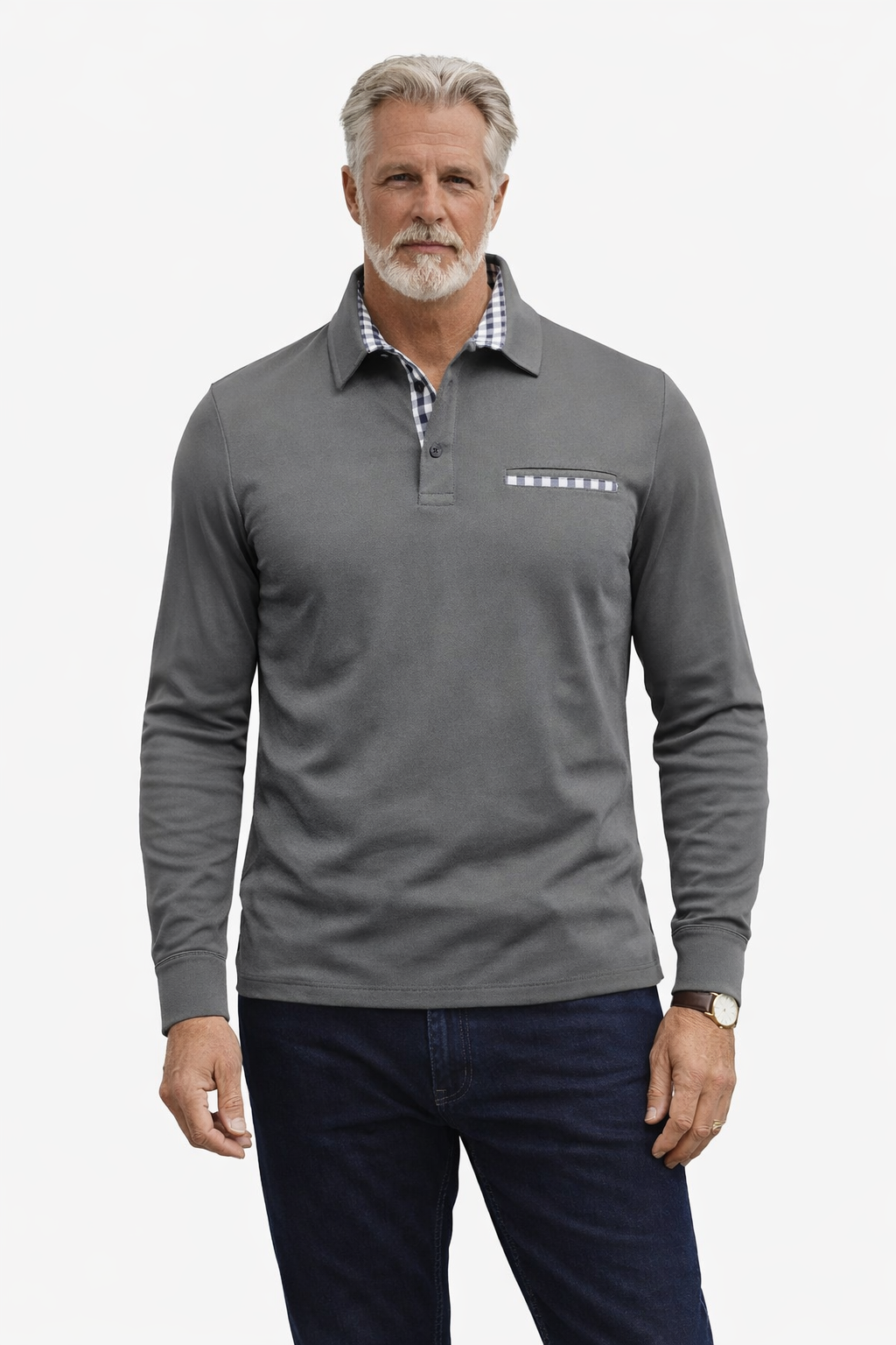 Show strength, charm, and self-assurance with the Harry Long-Sleeve Polo Shirt — a refined essential for the modern man. Designed with a tailored fit and subtle plaid accents, it combines everyday comfort with a sharp, masculine edge. Perfect for any occasion, from business lunches to weekend plans, Harry helps you look effortlessly put together.