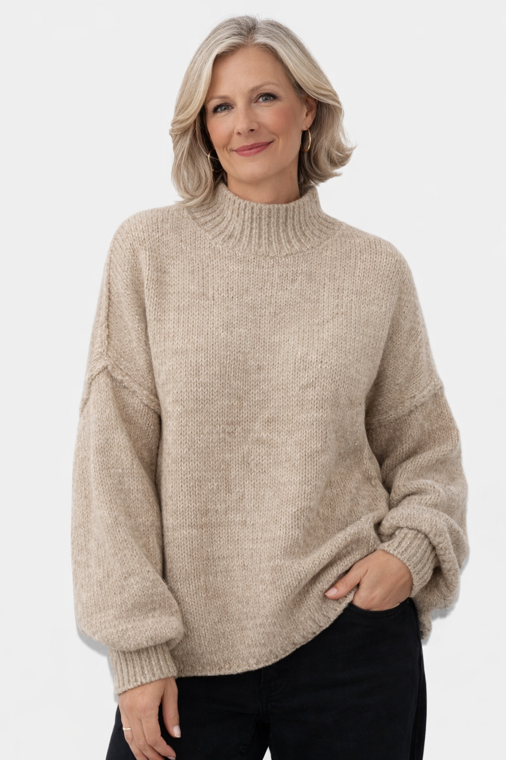 Refresh your wardrobe with our oversized sweater that combines comfort and style. Made from soft and high-quality knitwear, this sweater features a loose fit and impressive balloon sleeves that add character.
