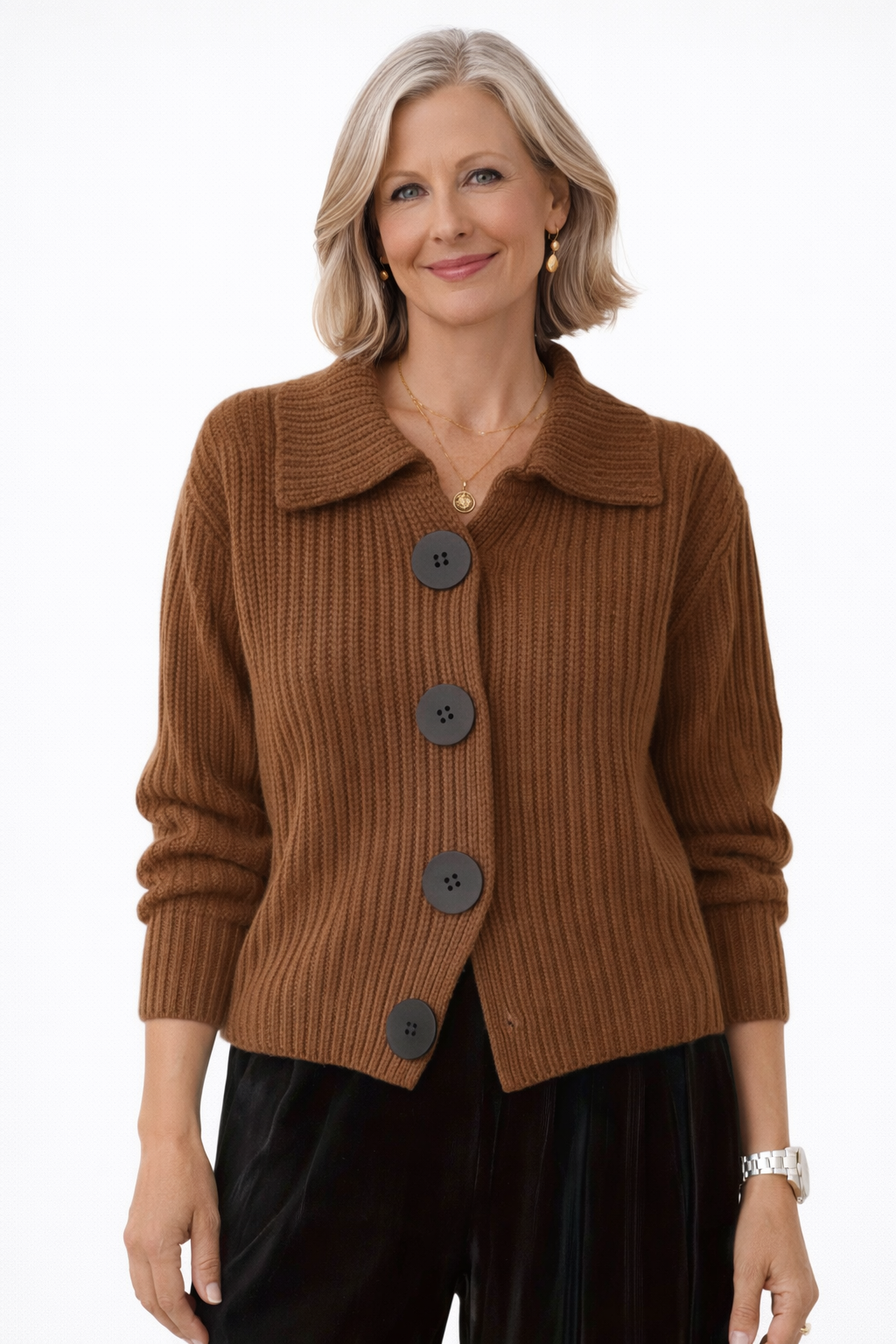 Hana Cardigan - warm, balanced, and stylish, perfect for autumn days. This coat is an excellent combination of texture and color that will enrich your seasonal wardrobe.