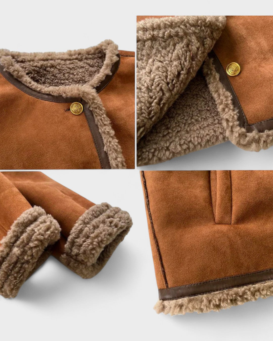 Ulepsz swój zimowy styl z Rosalie™ – elegancki jagnięcy płaszcz z guzikami, który łączy ciepło, kobiecość i ponadczasową elegancję.