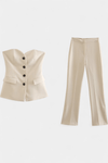 Effortless comfort and minimalist style – the Paesha set combines a sharply tailored vest with naturally flowing wide pants. Its minimalist and loose design is perfect for everyday life, offering a fresh and sophisticated look.