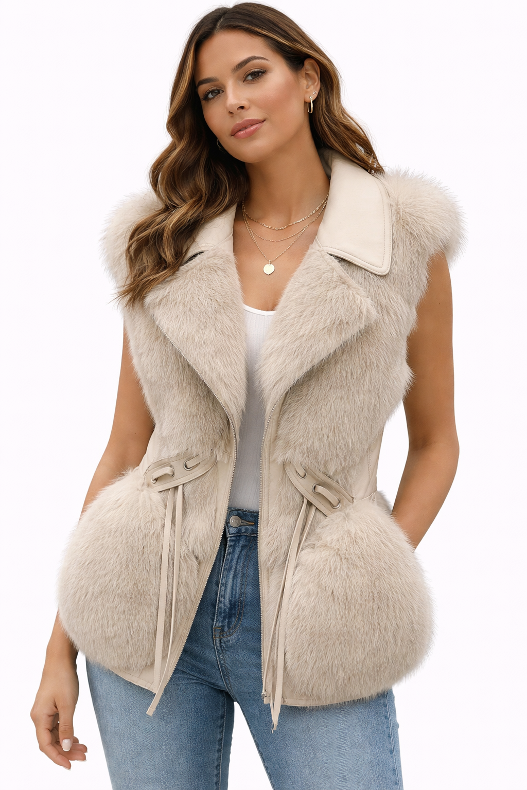 Elegancja i ciepło w każdej warstwie! Alina™ skórzana kamizelka to must-have, który przekształci Twoją stylizację w wyrafinowany look. Dzięki szerokiemu kołnierzowi, regulowanemu pasowi i miękkiej podszewce, łączy styl z komfortem – idealna na chłodne dni i warstwowe stylizacje.