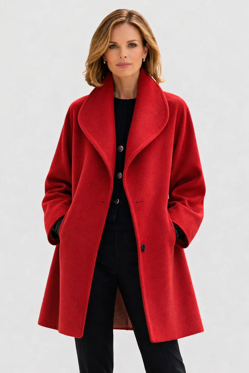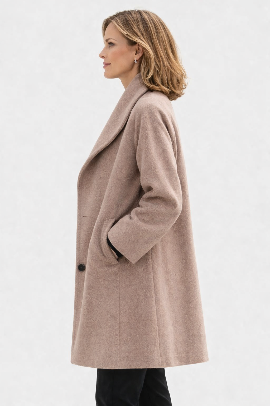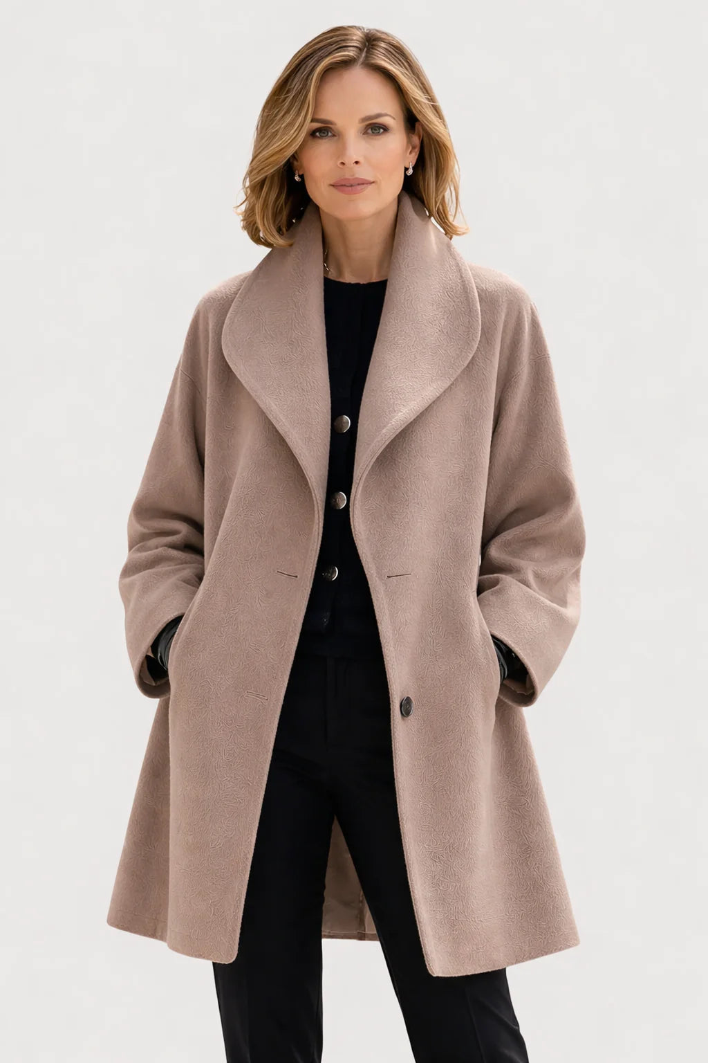 The Claire is easy to style and works well for many occasions. Wear it casually with jeans, knitwear, and ankle boots, dress it up with tailored trousers and loafers, or pair it with a simple dress and boots for the evening. One coat that fits many moments.