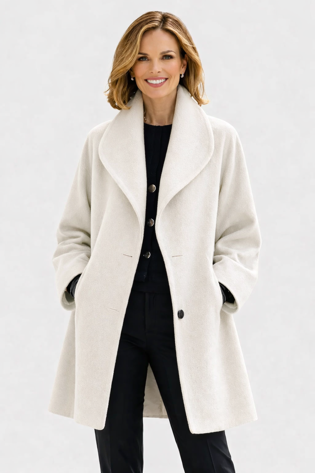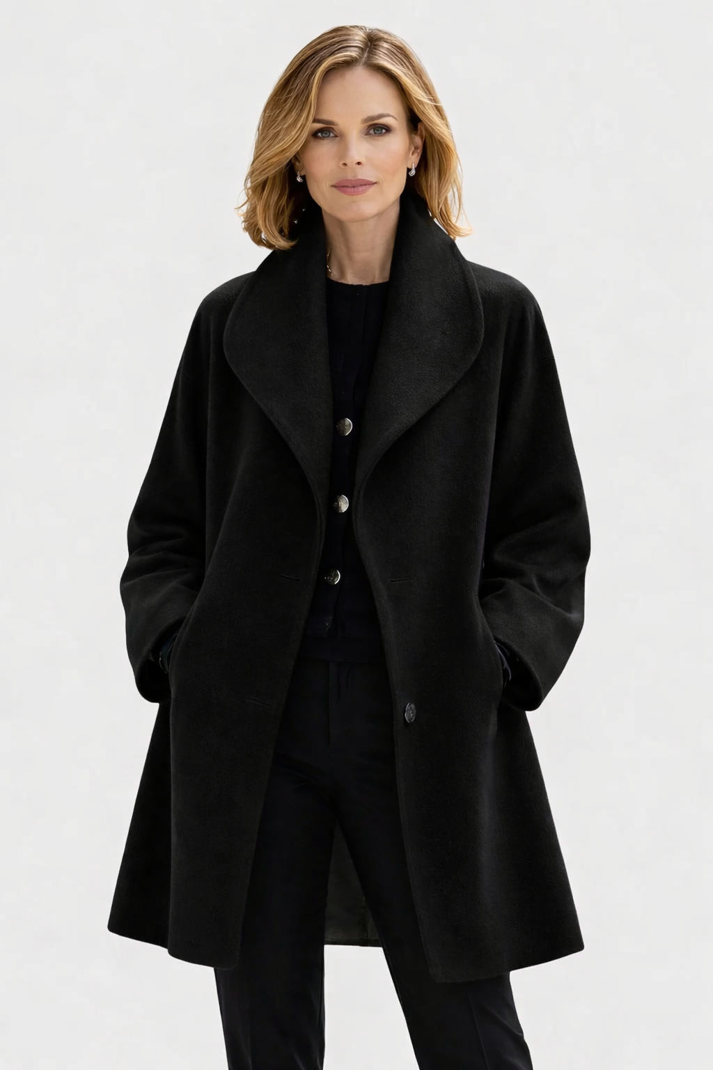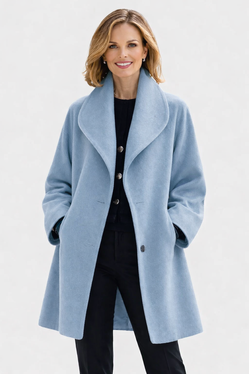 The Claire is easy to style and works well for many occasions. Wear it casually with jeans, knitwear, and ankle boots, dress it up with tailored trousers and loafers, or pair it with a simple dress and boots for the evening. One coat that fits many moments.