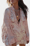Boho style with a free spirit. The Amalia set combines a loose shirt with a nautical pattern and shorts with an elastic waistband, creating a relaxed and distinctive summer look. Ideal for those who appreciate comfort without compromising visual authenticity.