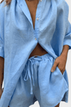 Enjoy summer days with carefree style thanks to the Anika set. The combination of a relaxed button-up shirt and lightweight drawstring shorts offers comfort and ease for every leisure moment. Made from a lightweight cotton blend, it is perfect for warm walks, weekend trips, or relaxed afternoons.