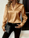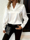 Add a touch of timeless elegance to your wardrobe with this stunning women's satin blouse. Made from smooth, shiny satin fabric, it offers a refined and modern look perfect for the office, formal events, or special evenings.