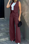 Bring elegance, comfort, and confidence to your wardrobe with the two-piece Vienna set. The set consists of a fitted vest and wide-leg trousers that harmoniously combine casual style with elegance.