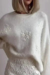 The Zariah Elegant Sweater brings a new level to winter wear. Subtle floral details and an elegant, snow-white knit make it the perfect choice for special moments—celebrations, winter dinners, or everyday elegance.